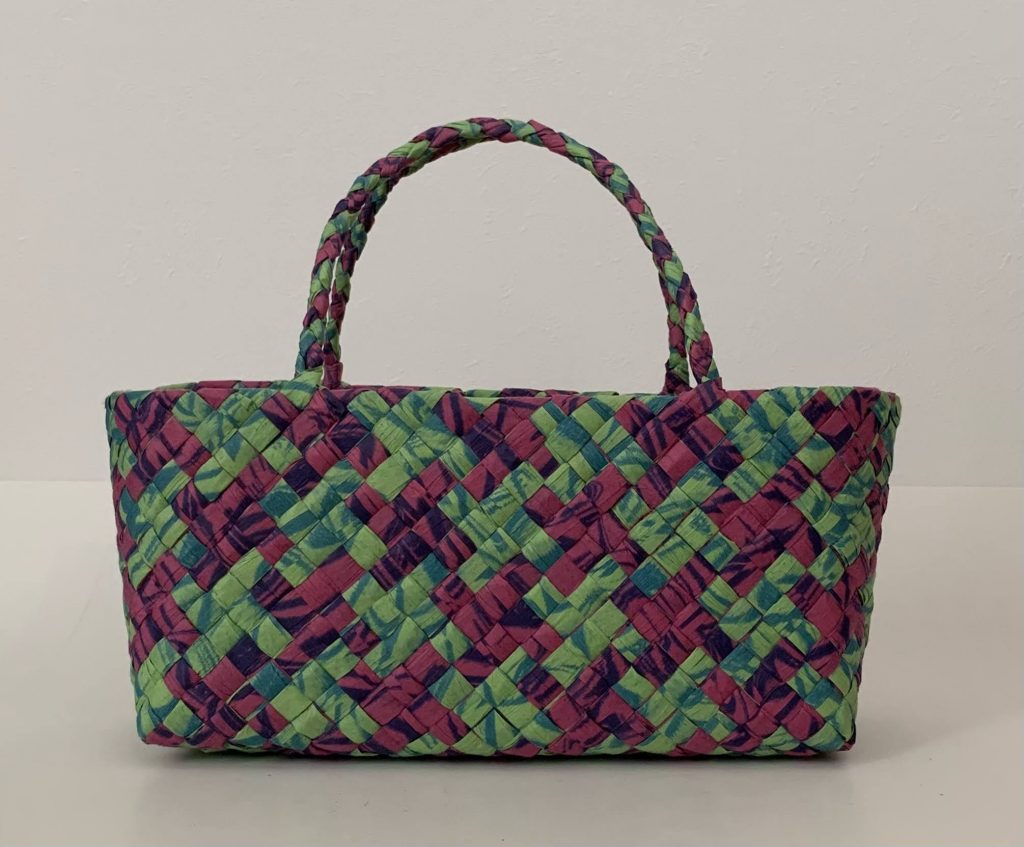斜めストライプのかごバッグを作りながら思ったのは、せっかくのダイナミックな模様を平凡化してしまっているのでは、ということです。編地が丈夫になるという点では良いのですが。