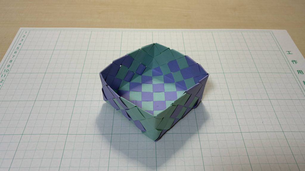 側面が重なり、底の適当な箇所で隠れるようにしてください。