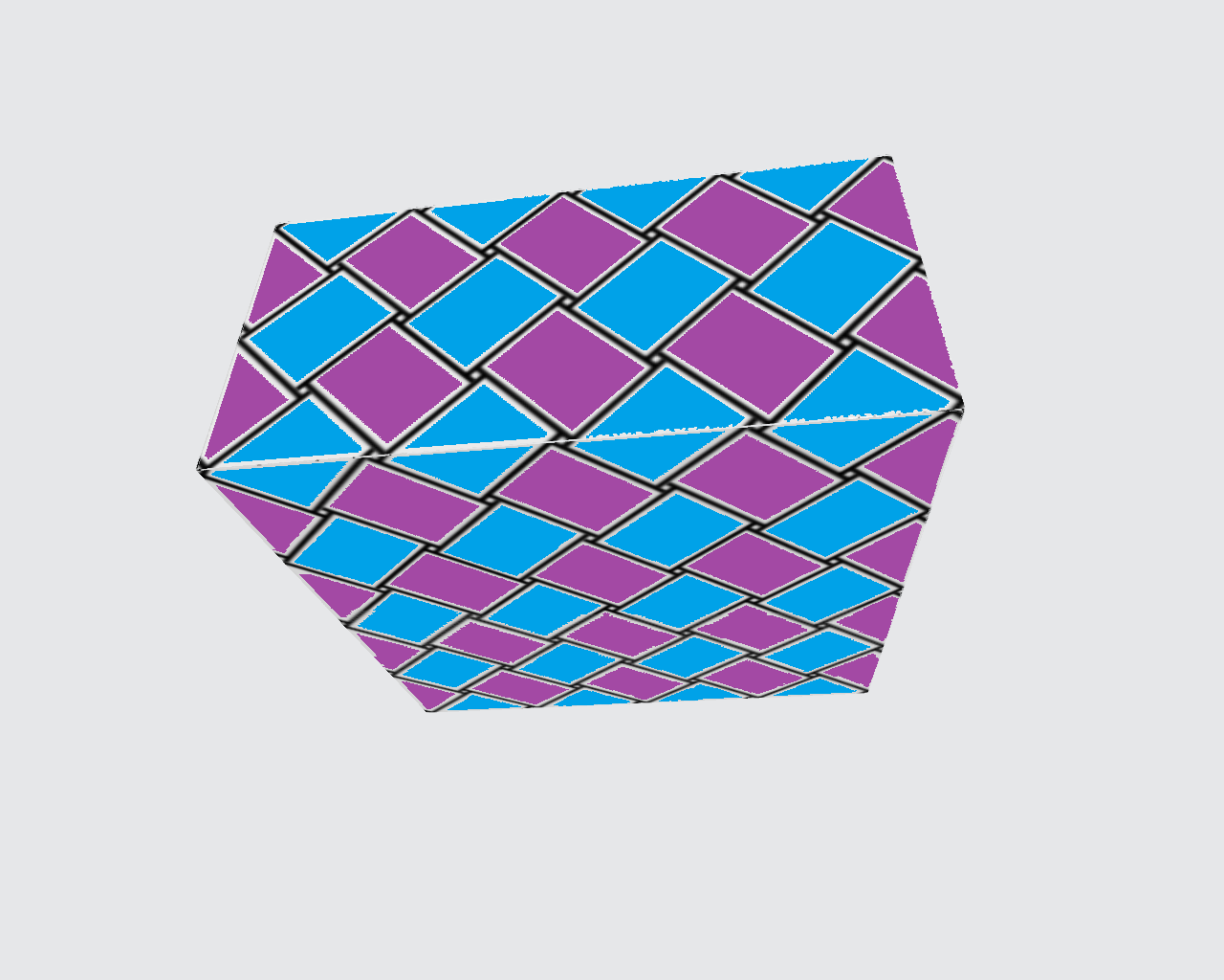 底を格子模様にしても、斜めに立ち上げると、側面の格子模様は崩れます。