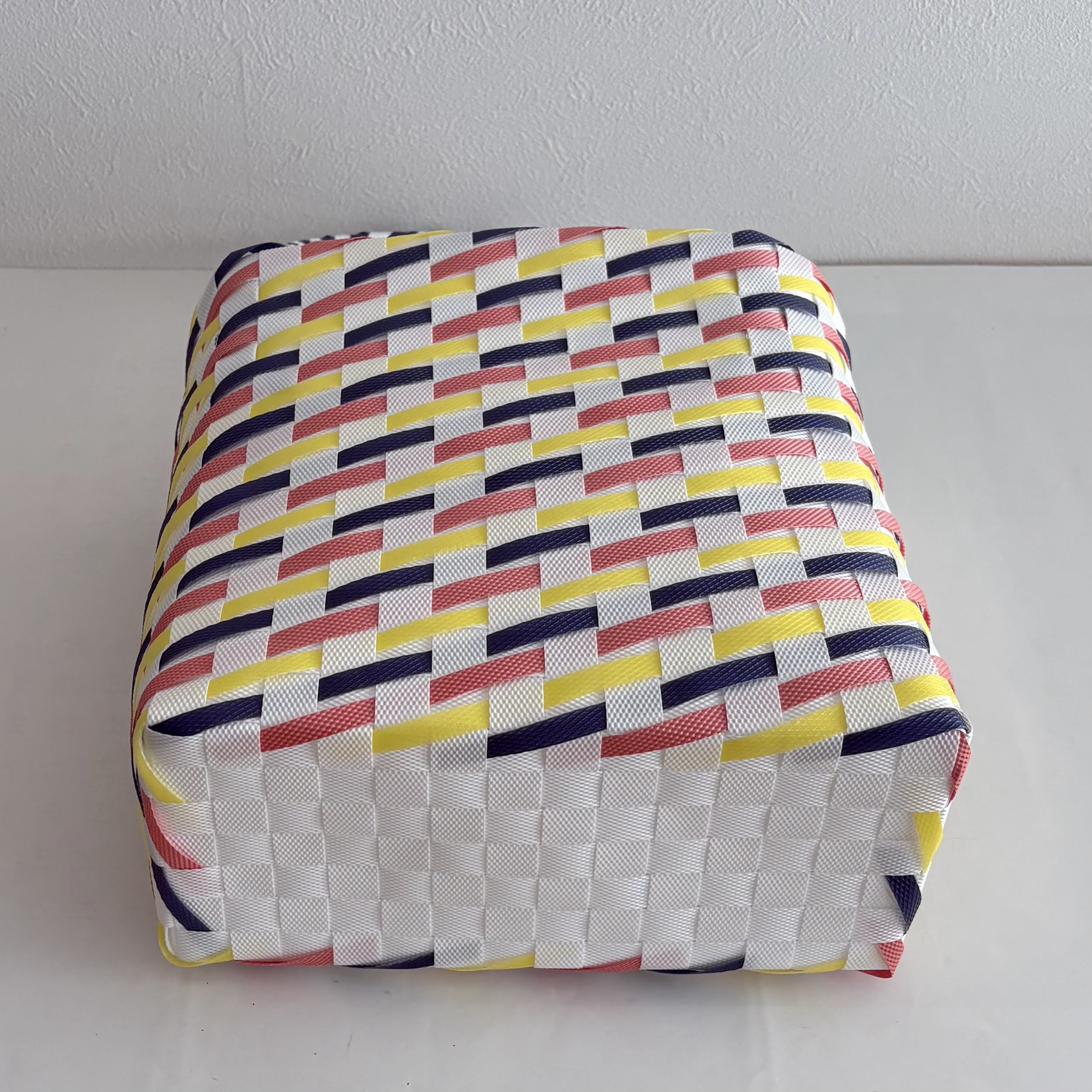 「横3マス・縦1マス」タイプ、レベル1のステッチです。ベース色は白、A色はイエロー、B色は紺、C色は赤にしてみました。