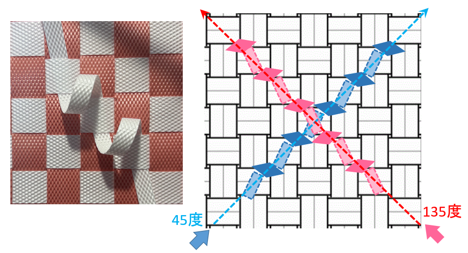 備考ベースは2色の格子、B色の斜めラインに後差しひものB色が重なることでB色の菱形が作られ、A色を囲みます。