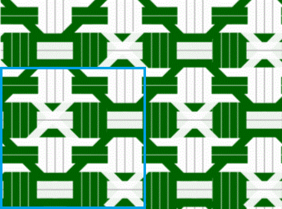 1単位分の編み目(青枠)は4×4です。