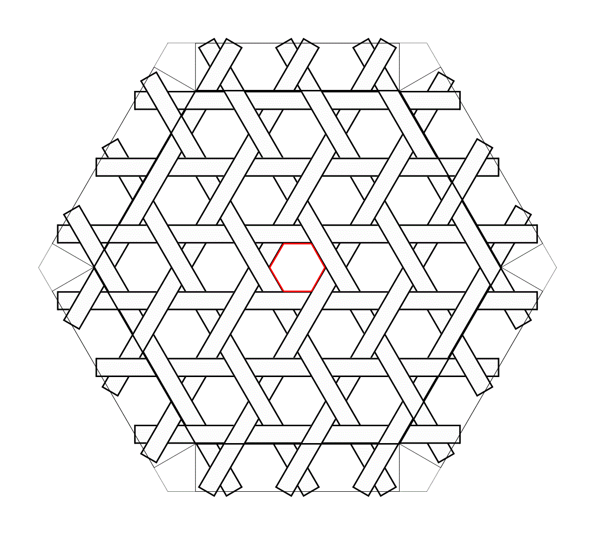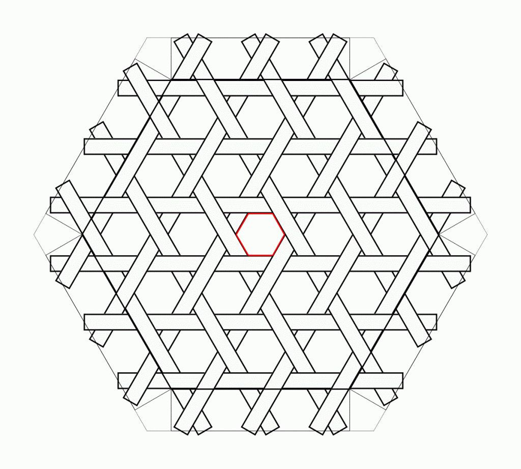 Hexagon です。六つ目はありふれているので、麻の葉にしてみました。