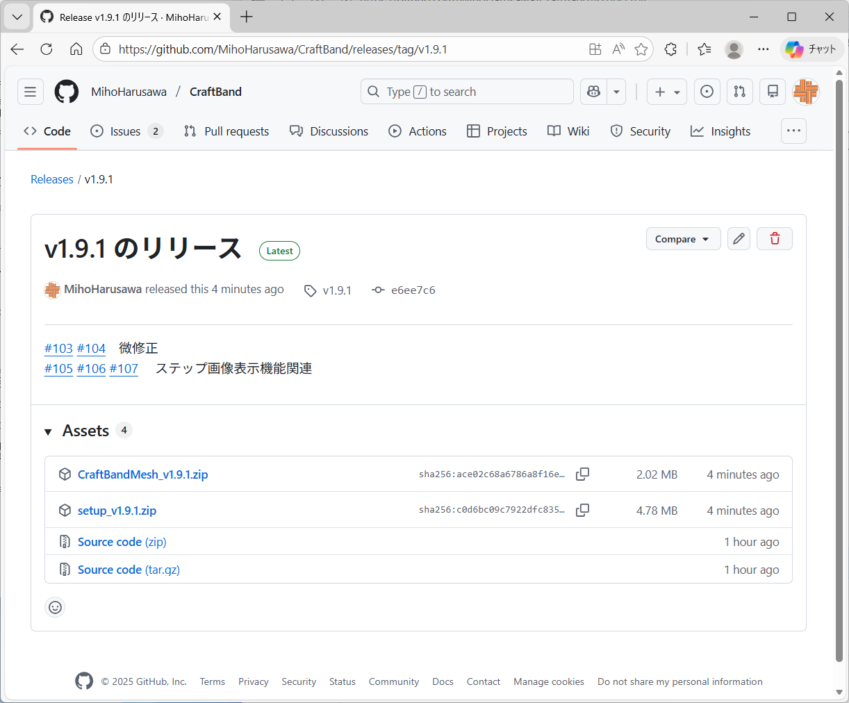 バイナリ一式は、CraftBandMesh_v1.9.1.zip に入っています。