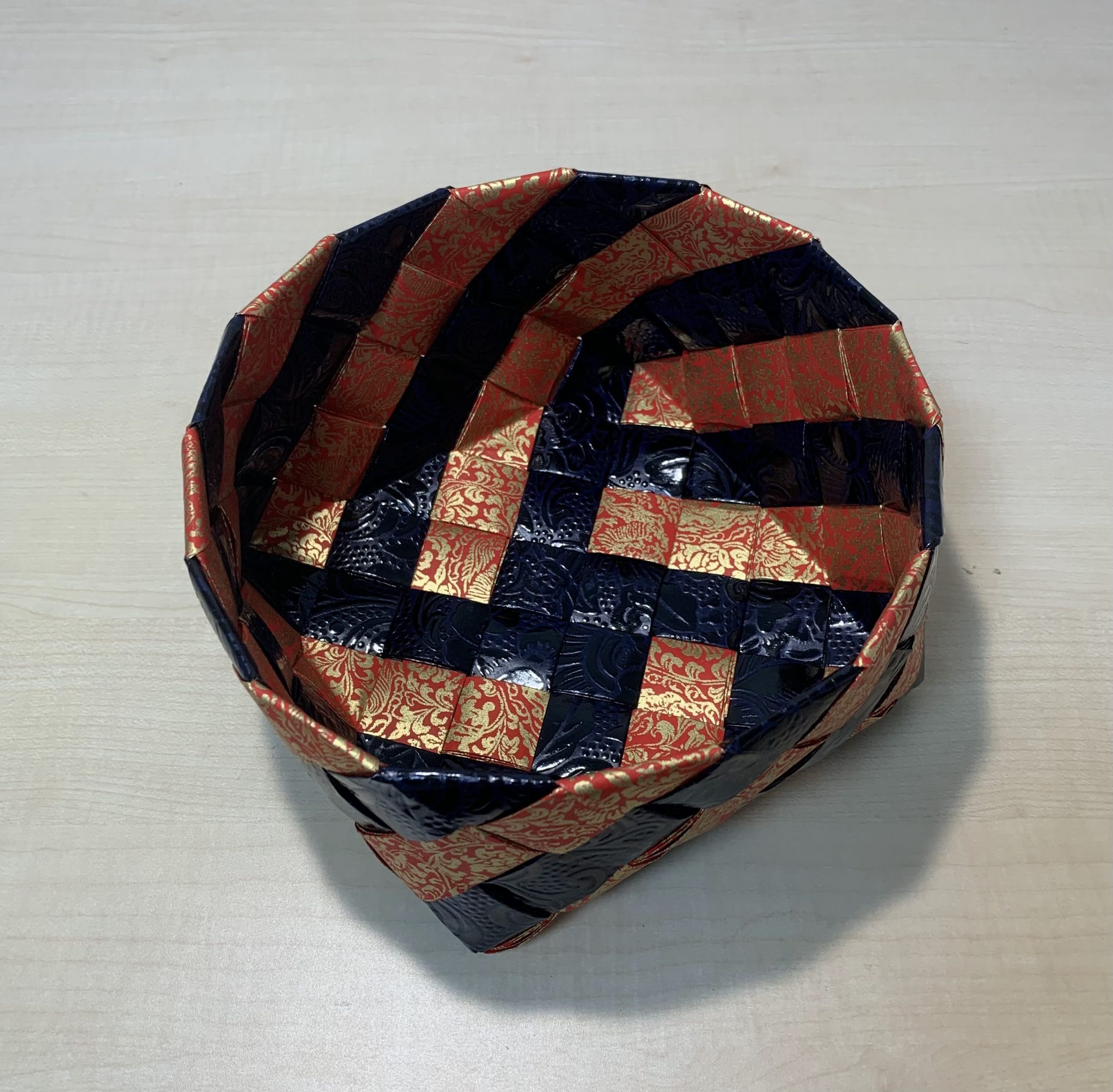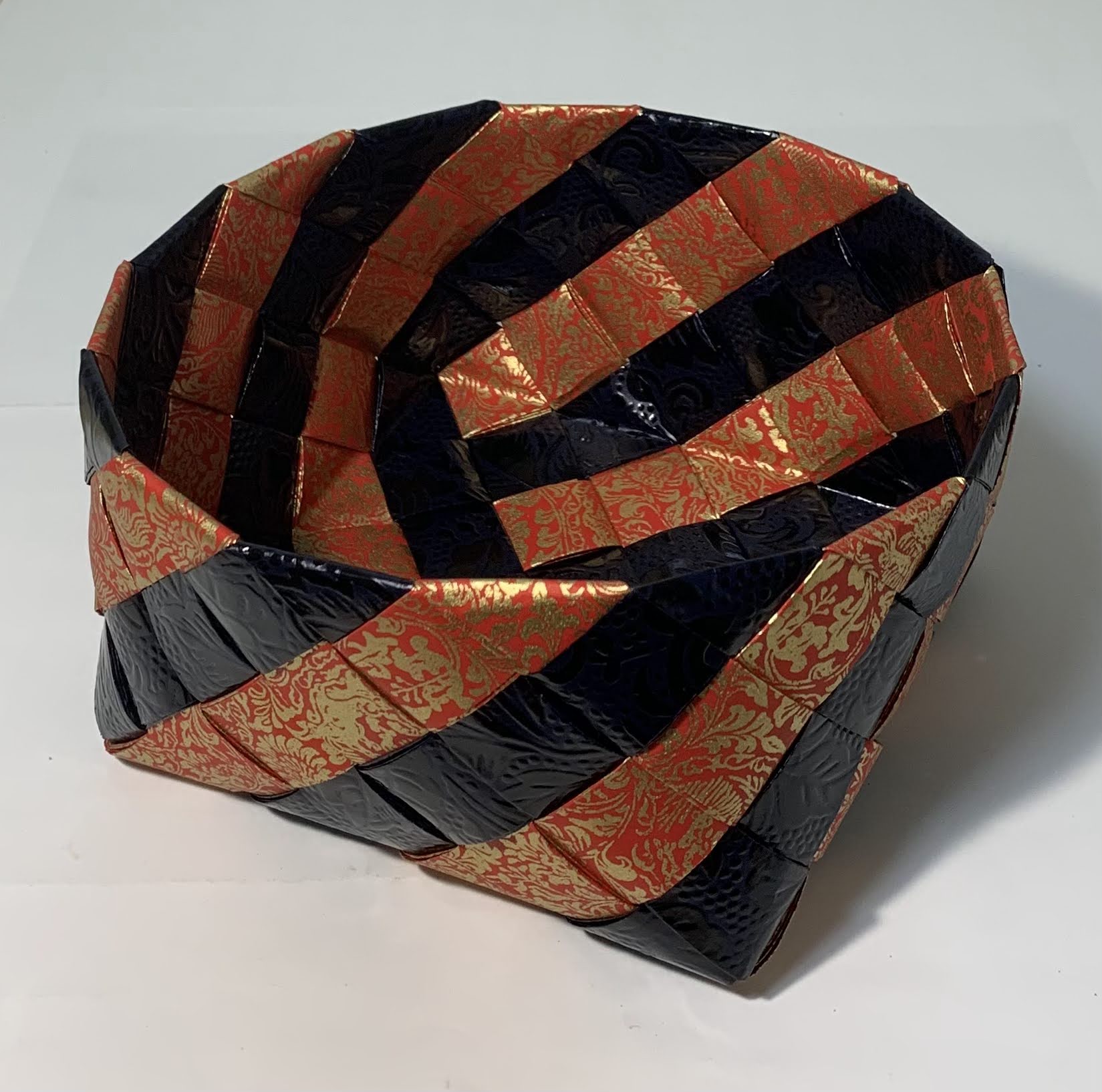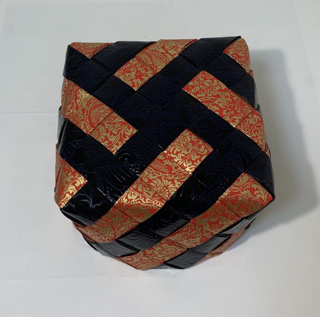 先と同じ、80cm×55cmの和紙を2枚使って縞模様の小物入れにしてみました。友禅紙とうるし紙です。