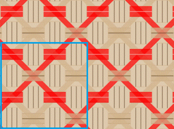 斜め方向・水平方向ともに2色交互のパターンです。菱形の辺にバーが重なります。