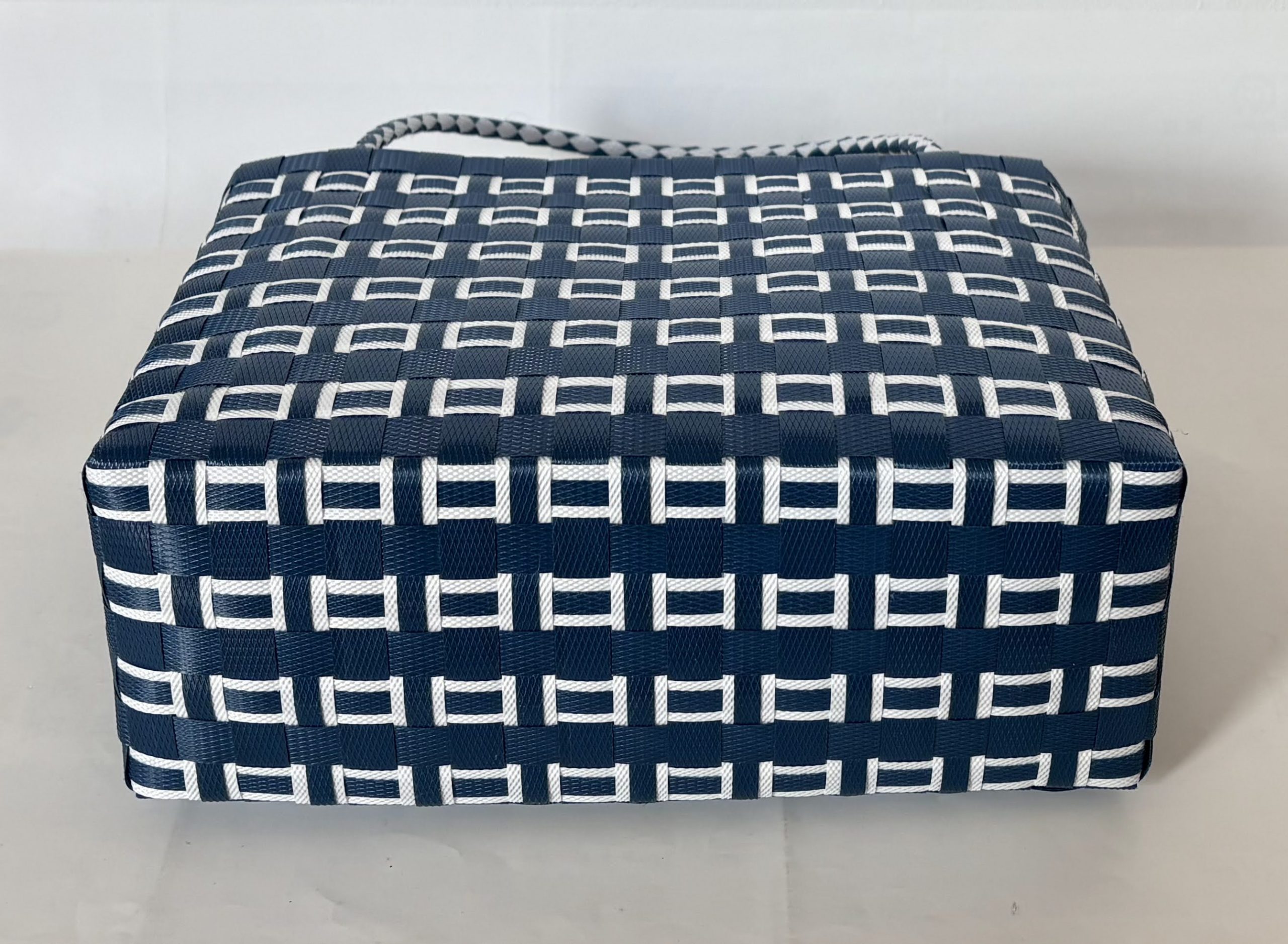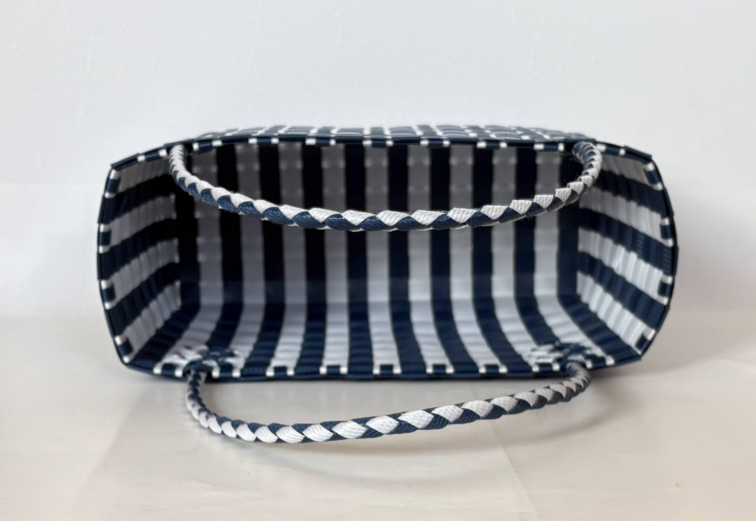 内側と底です。内側は直交方向のストライプ、垂直方向の差しひもは底を通したので底も同じ模様になりました。