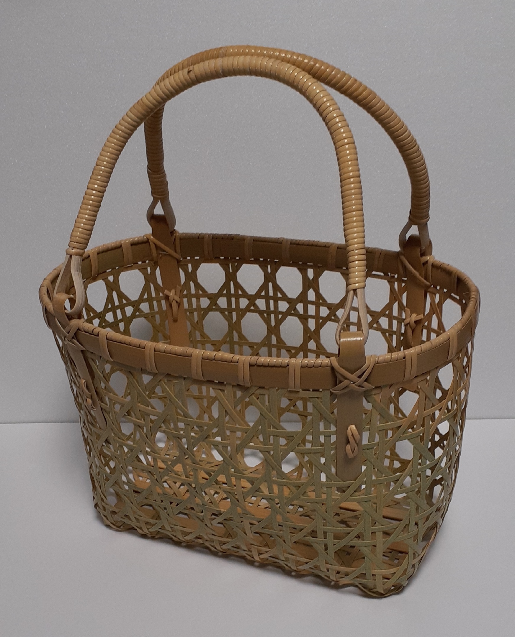 お写真を拝見して、丸くてとても可愛らしい形だなと思いました。竹だけでなく籐も使われ、縁や持ち手まで細やかに仕上げられているのが印象的です。使ってくれる方を思っての細工なのだろうな、と感じました。ここに内袋が加わって、持ち歩いていたら、皆から「素敵ですね」と褒められることでしょう。